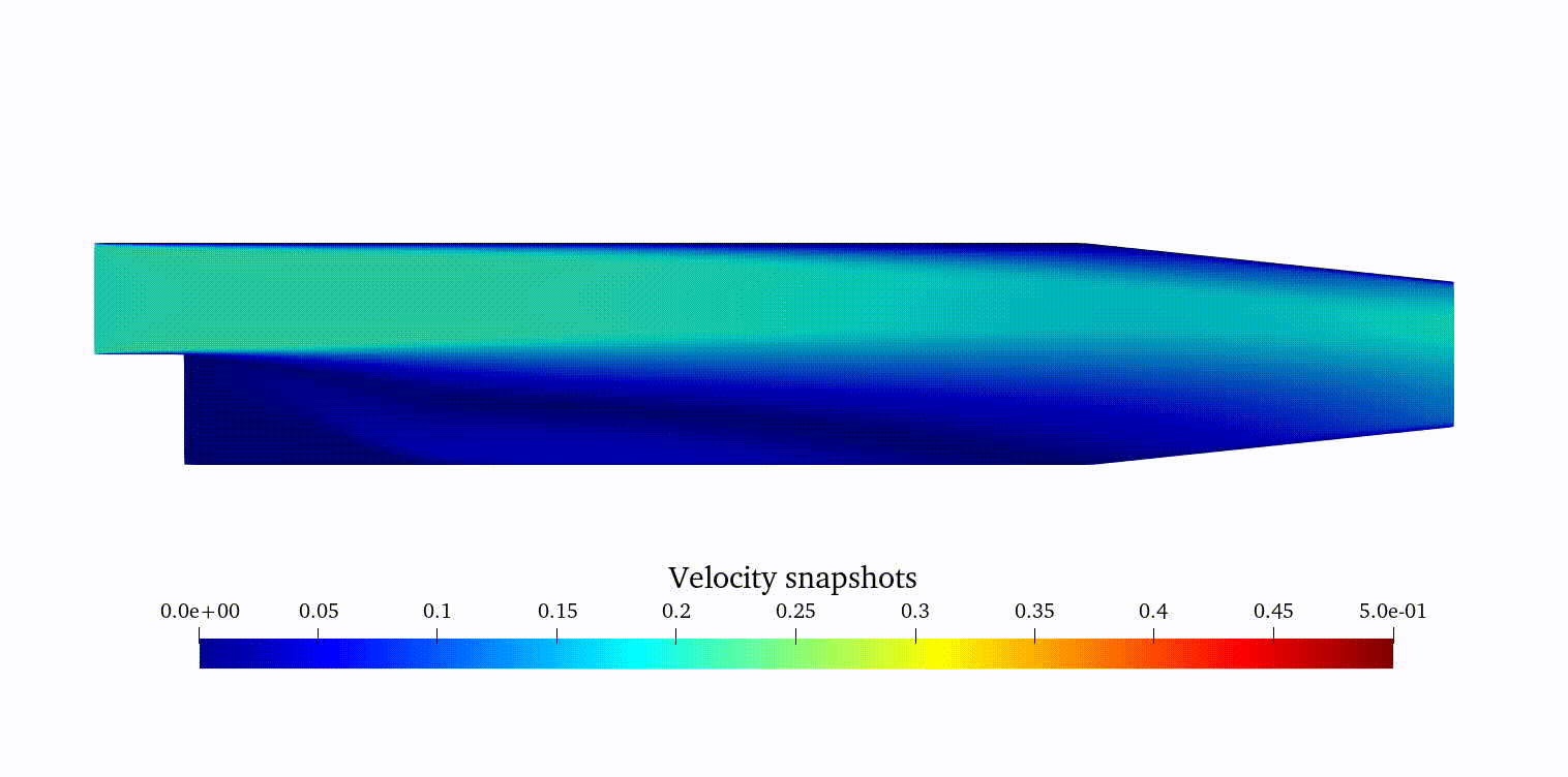 07NonIsothermalMixingElbow: apply POD with RBF interpolation to the pitzdaily test case, with parametrized inlet velocity magnitude and orientation.