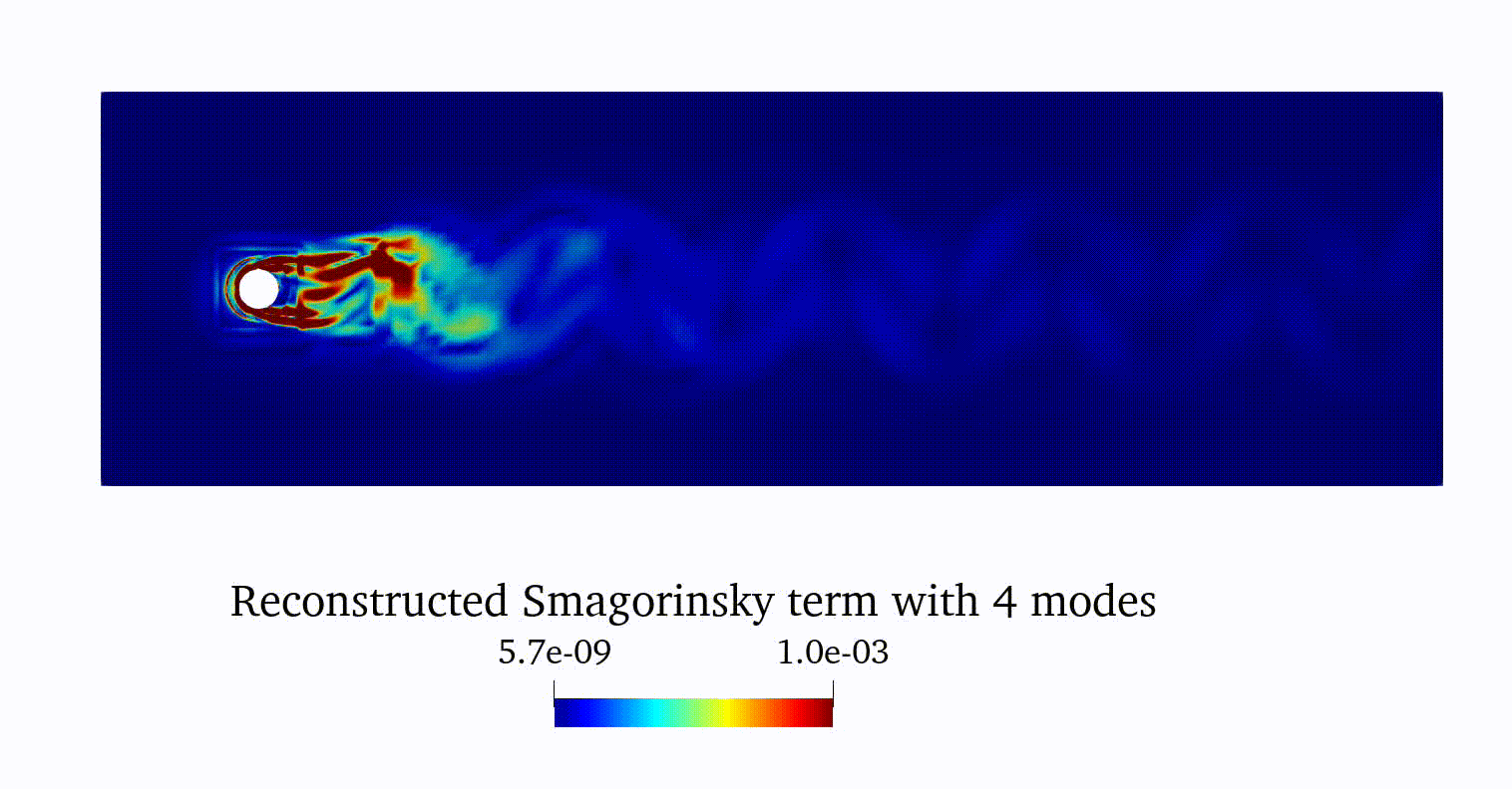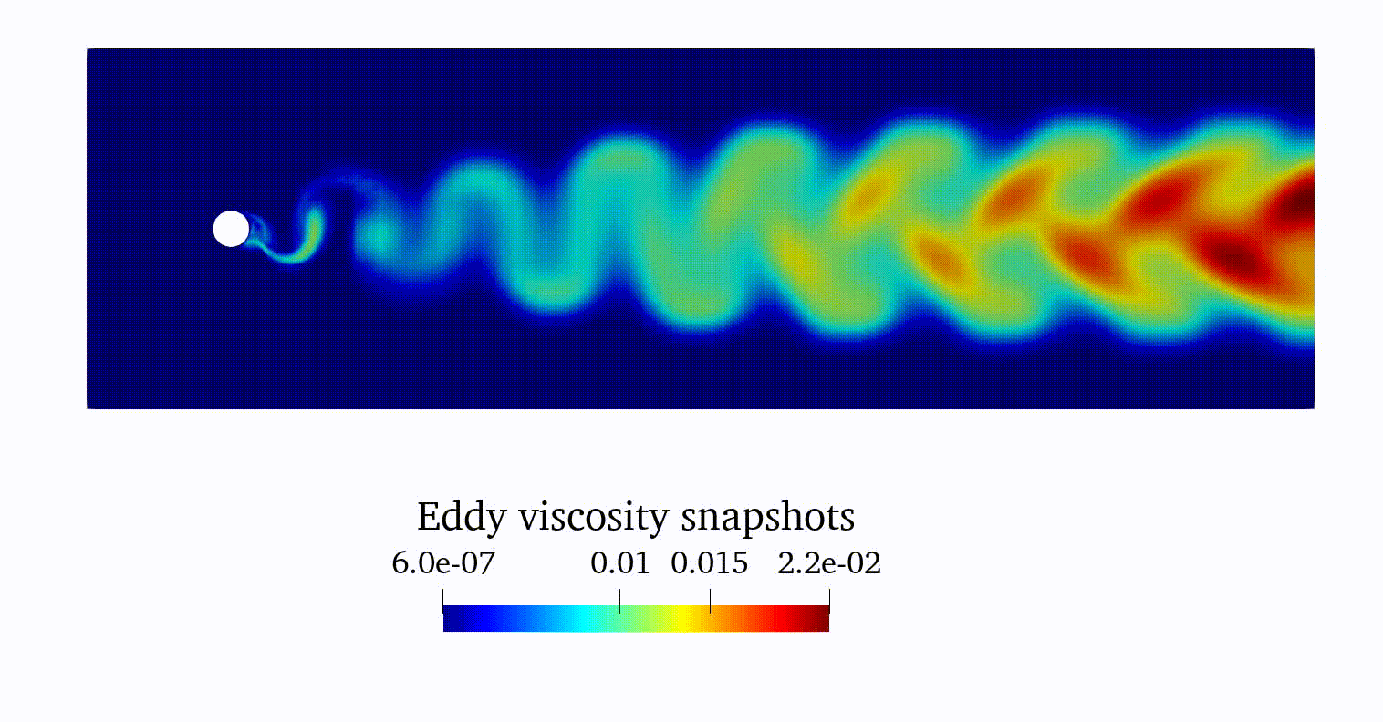 21unsteadyNSTurb_RBF: solving a reduced unsteady system with RBF interpolation for eddy viscosity coefficients, in the flow past a cylinder test case.